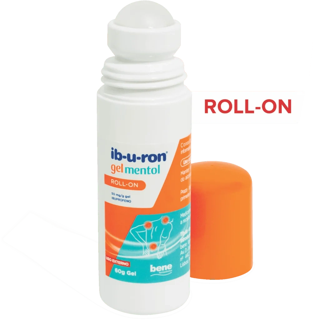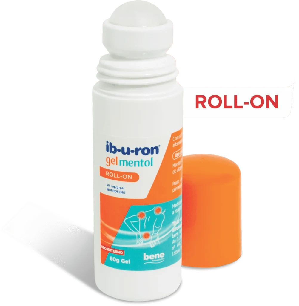 ib-u-ron® gel mentol e ib-u-ron® gel mentol roll-on contêm 50 mg/g de ibuprofeno em gel e estão indicados em uso cutâneo em adultos e crianças com mais de 12 anos, no alívio local da dor e inflamação ligeira e ocasional, após situações pós-traumáticas, pequenas contusões, distensões, torcicolo ou outras contraturas, dor nas costas (lombalgia) e entorses ligeiras.